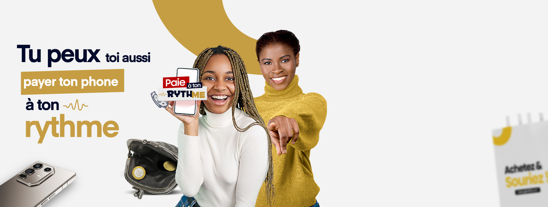 Le service "Paie à ton rythme" est une solution simple et flexible qui te permet de prendre ton smartphone chez Glotelho sans payer la totalité en un seul versement. Tu verses une 1ère tranche, et tu repars immédiatement avec ton téléphone. Ensuite, tu règles le reste petit à petit, jusqu’à 12 mois, via Glotelho Pay, sur glotelho.cm ou dans nos showrooms. Oui aussi simple que ça !!!!